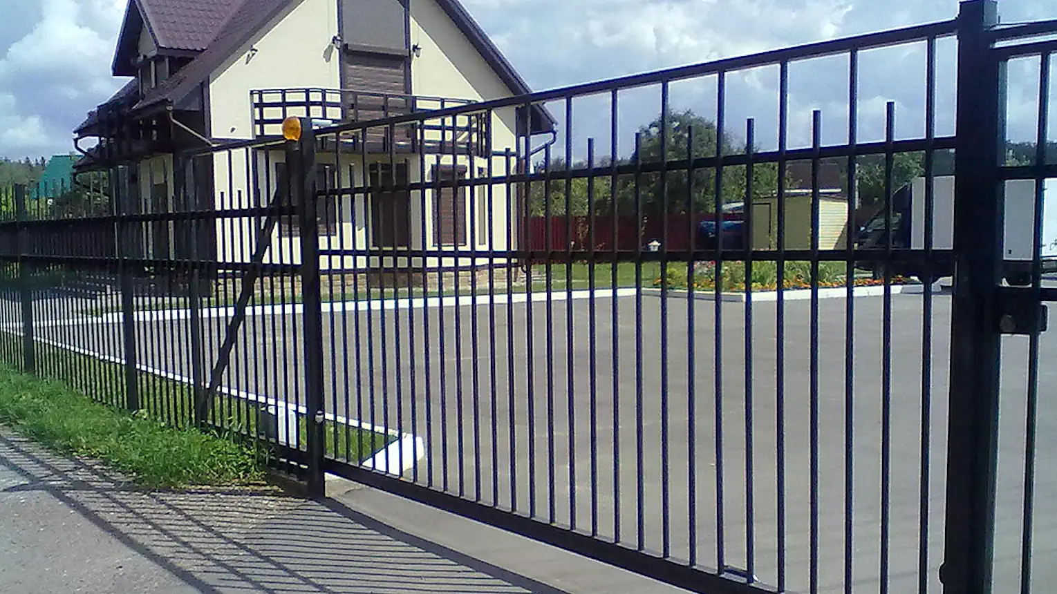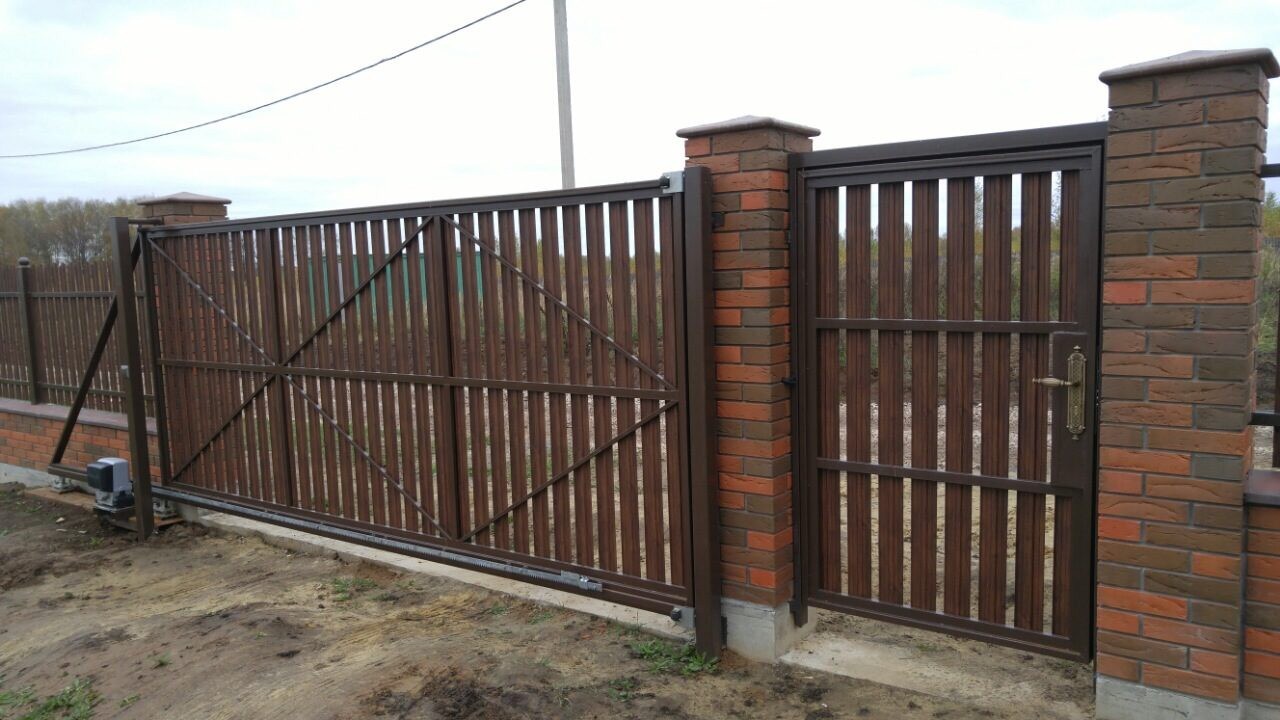 Откатные ворота из евроштакетника с встроенной калиткой и автоматикой